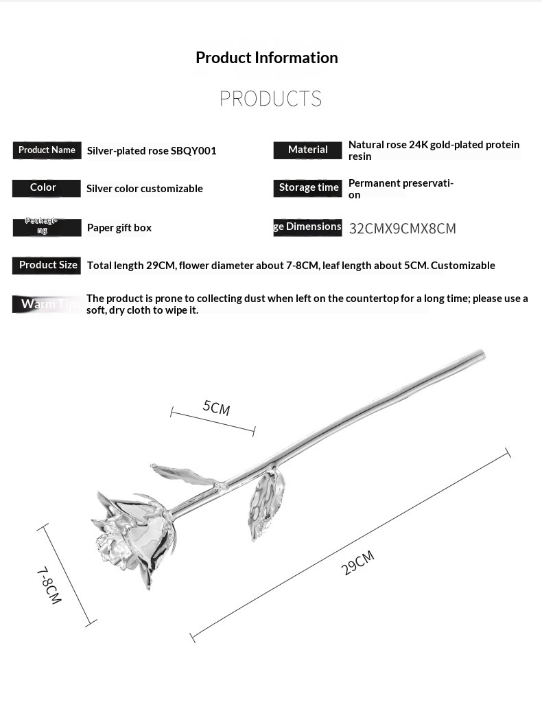 All-silver-plated Roses Single Silver-plated Preserved Flowers