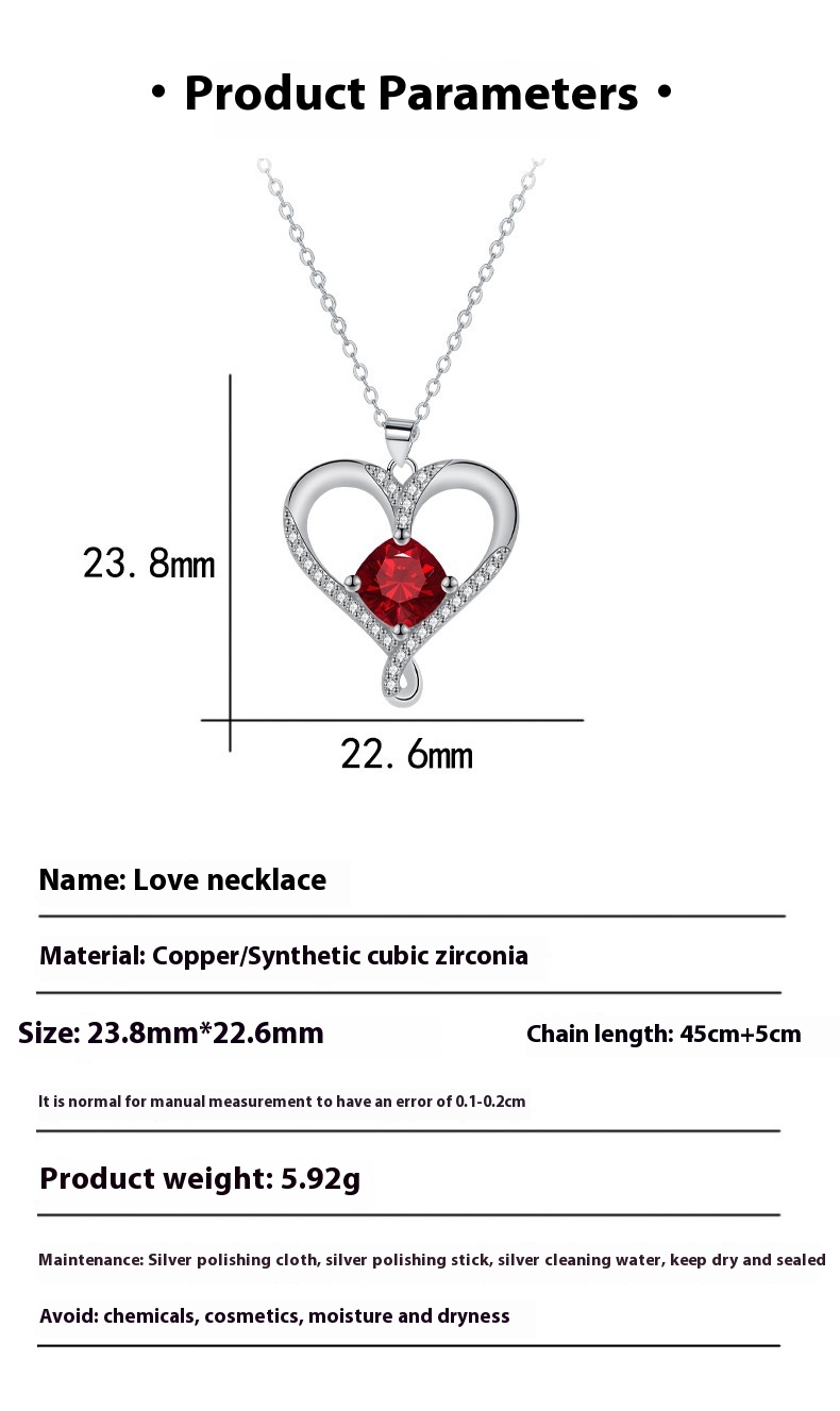 European And American Fashion Valentine's Day Gift Love Inlaid Pendant Clavicle Chain Heart-shaped Female
